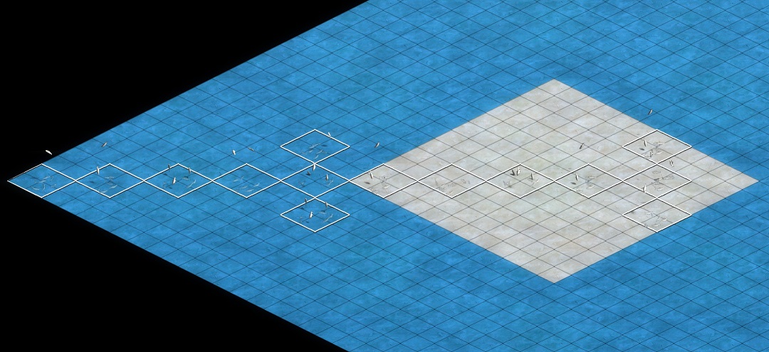 このとき、必ず斜めに繋ぐこと、左右にぶらさないようにする。埋める、塗るという意識より、タイルを丁寧に 1 つずつクリックして「繋ぐ」という意識を持つと失敗しにくい。